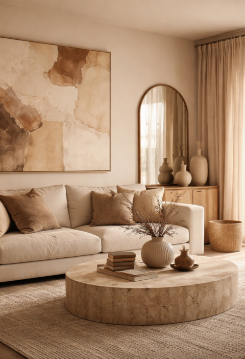 Zato je pri izbiri stila smiselno največji budžet in največjo zadržanost nameniti tlem, kuhinji, vgradnim omaram in sedežni garnituri. To so elementi, ki določajo osnove. Če so nevtralni in kakovostni, si prostor lahko privošči bolj drzne poudarke drugje. V prostoru, kjer je sedežna v nevtralnem tonu in iz trpežne tkanine z visokim številom Martindale, lahko dekoracija menja razpoloženje brez novega pohištva. Podatek o odpornosti proti obrabi je pri družinah in hišnih ljubljenčkih pogosto pomembnejši od odtenka, saj se estetika hitro sesuje, ko material pokaže obrabo po nekaj mesecih.